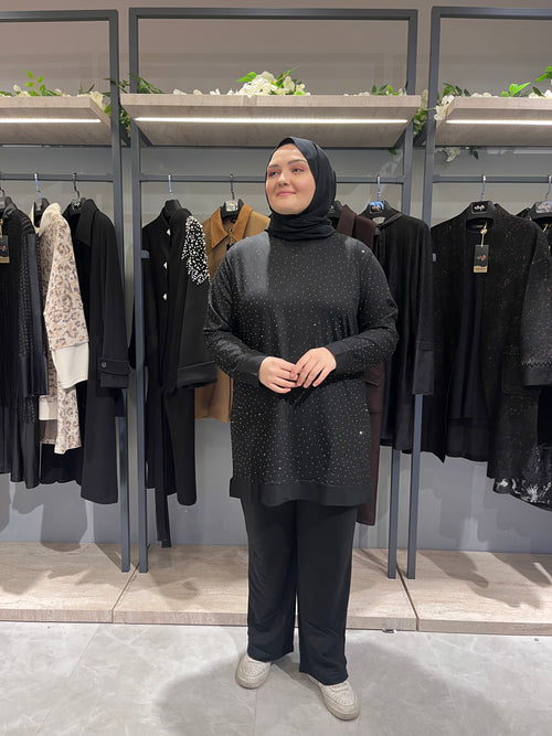 Boncuk İşlemeli Fileli Şık Takım - 25140